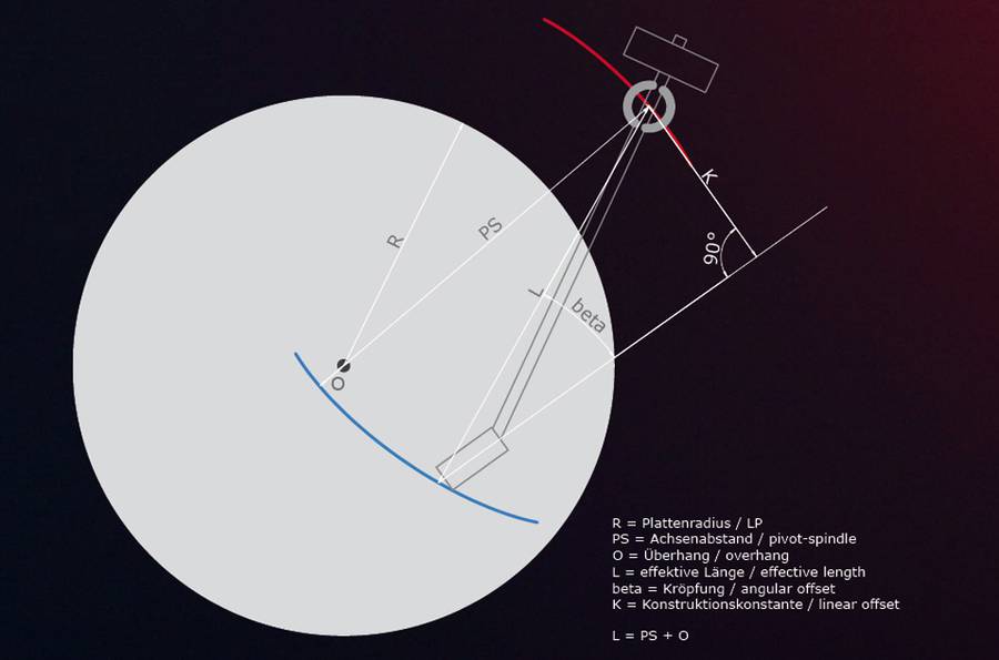 Die prinzipiellen geometrischen Zusammenhänge für eine Abtasteinrichtung basierend auf einem Drehtonarm wurde in Publikationen von Baerwald und Löfgren in der ersten Hälfte des 20. Jahrhunderts bereits abgehandelt. Das Resultat dieser Publikationen war, dass die ideale Anordnung für einen Drehtonarm einer gegebenen Länge auf einem gekröpften eingebauten Abtaster aufbaut, der mit einem definierten Überhang über den Plattenradius geführt wird. Somit überstreicht der Abtaster die Platte in exakt zwei Punkten tangential – dem inneren und dem äußeren Nulldurchgang. In den frühen 1960er Jahren hat sich ein weiterer Mathematiker des Themas nochmals angenommen und seine Ergebnisse präsentiert (Stevenson).